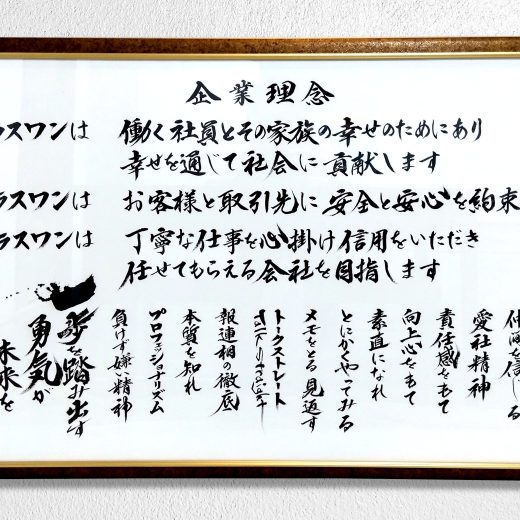 企業理念や社是、行動指針などを“毛筆”という形で目に見えるものにする「毛筆理念」。